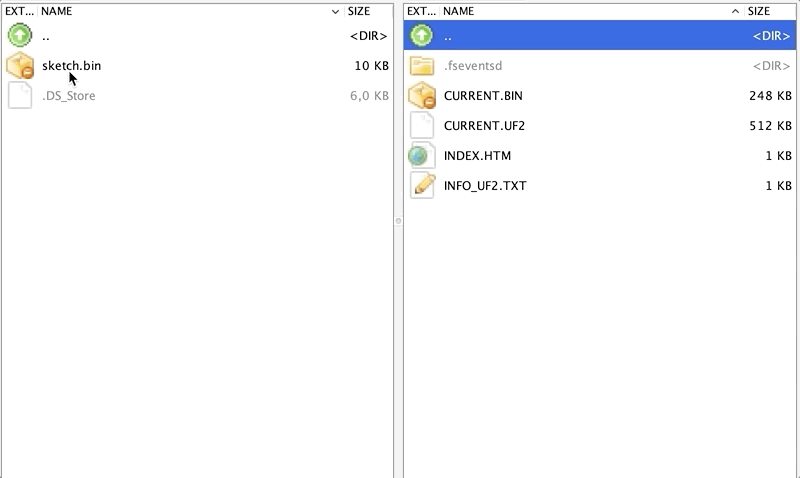 Schließt du deine senseBox MCU an deinen Computer an und führst einen Doppelklick auf dem roten Button aus, wird diese als Wechseldatendräger erkannt. Mit einem Klick auf “Code Kompilieren” in der Weboberfläche wird dein Programmcode auf dem Server kompiliert und eine .BIN-Datei wird dir zum Download angeboten. Je nachdem welches Betriebssystem du verwendest, unterscheidet sich nun der Kopiervorgang.