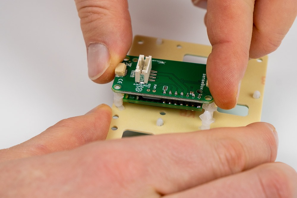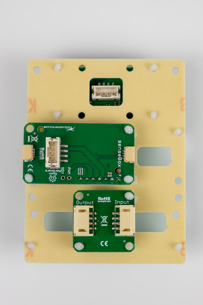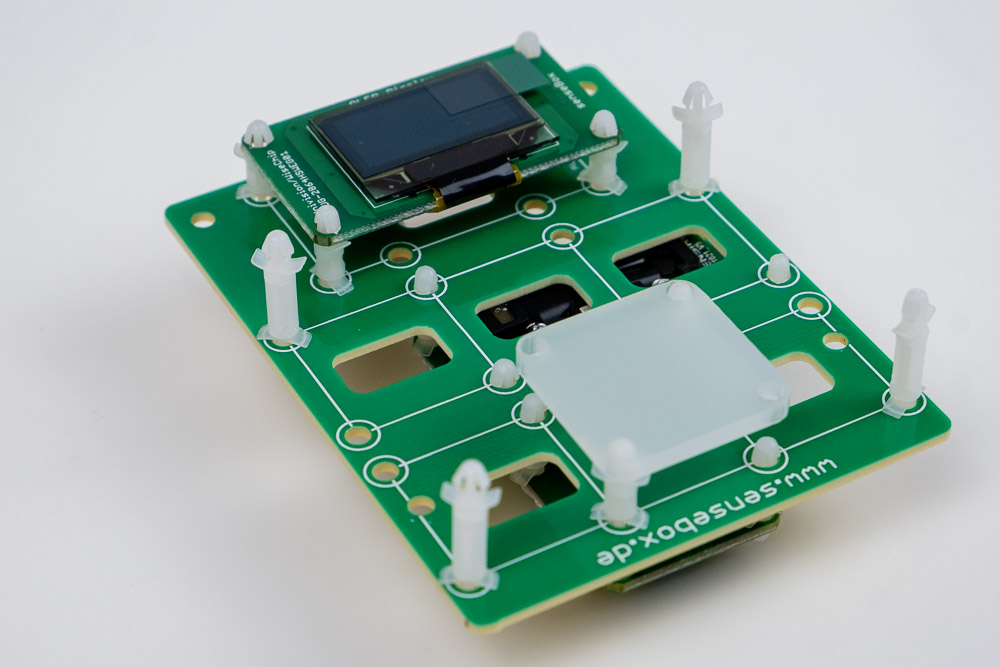 Auf die Unterseite werden jetzt der CO2 Sensor und die RGB-LED eingehängt: