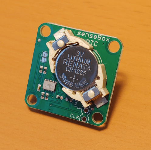 After inserting the button cell battery has been inserted into the holder, the RTC module is connected to an I2C port on the senseBox