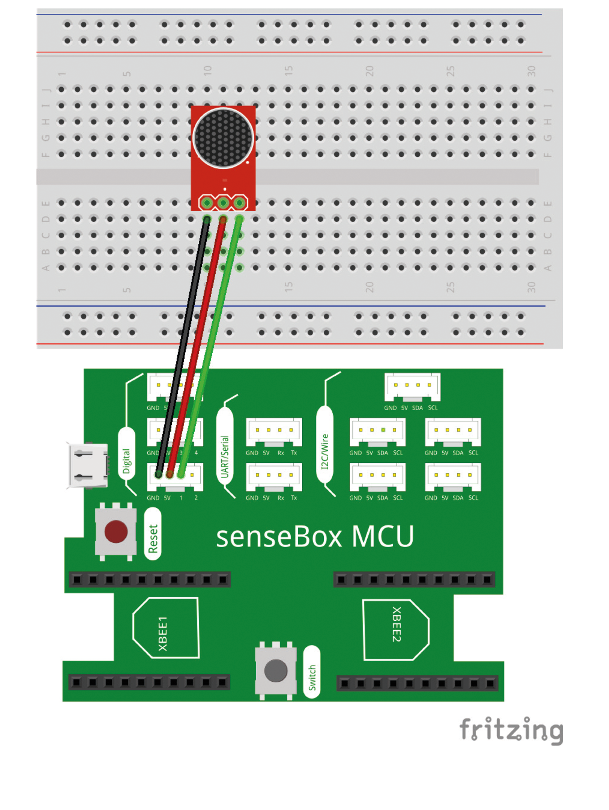 This condenser microphone from Watterott Electronics is equipped with an amplifier and can detect noises between 58 and 110 dB. It outputs the measured noises in a range of 0-5V.