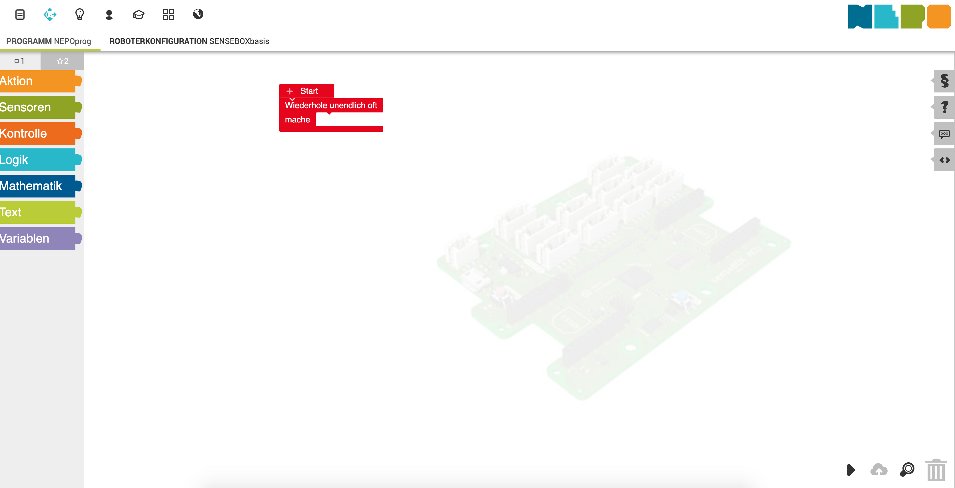 openRoberta is a graphical programming interface developed by the Fraunhofer Institute. In addition to the senseBox, you can program many other systems with openRoberta.