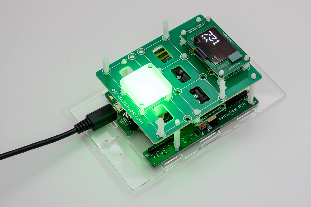 To be able to test the traffic light, you must download the programme file here and transfer it to the senseBox. To do this, connect the measuring station to a PC using the USB cable with the USB cable. There is a red button next to the USB port on the MCU. Press it twice in succession.